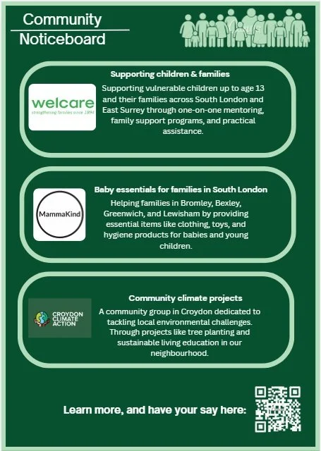 Our goal is to build a comprehensive database of charitable organisations, covering everything from neighbourhood heroes working locally to global organisations tackling worldwide challenges, and connect it to ‘Notice Boards’ placed in shop fronts, workplaces, and public spaces.